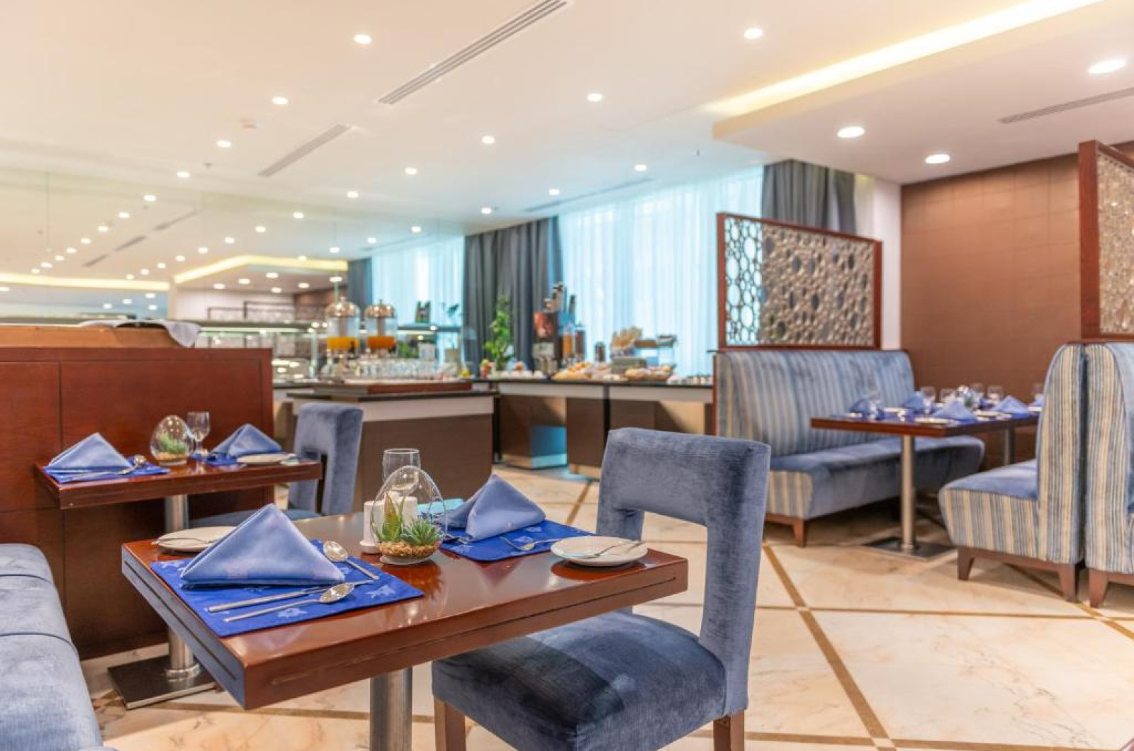 Oaspeții pot savura preparate din bucătăria internațională la restaurantul Monde. Jasmine Tea Lounge servește o varietate largă de ceaiuri și băuturi. Room service este disponibil pe toate zilele.