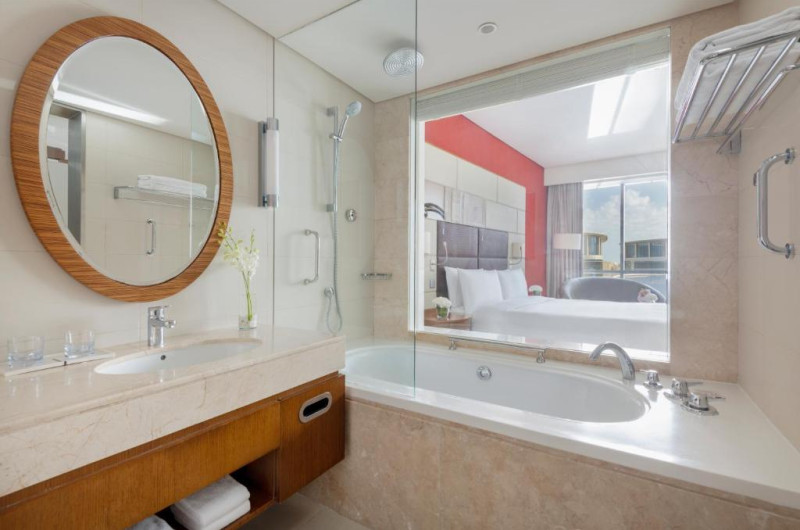 Cu vedere la Doha sau la emblematicul centru de evenimente din parcul de afaceri, fiecare cameră și suită spațioasă oferă lenjerie de pat de lux. Băile private moderne oferă halate de baie, papuci și articole de toaletă gratuite.