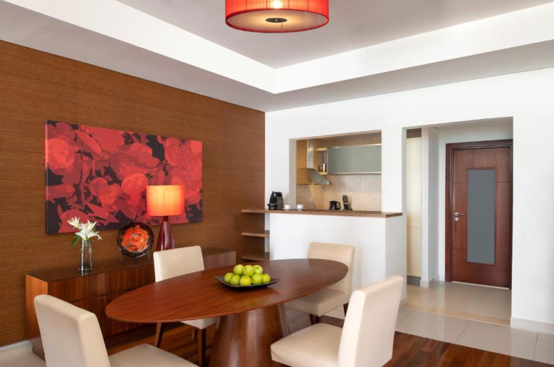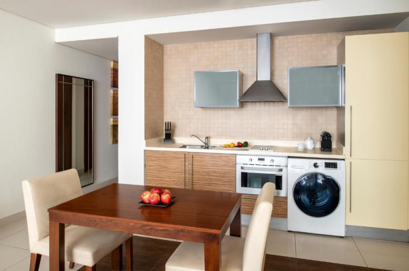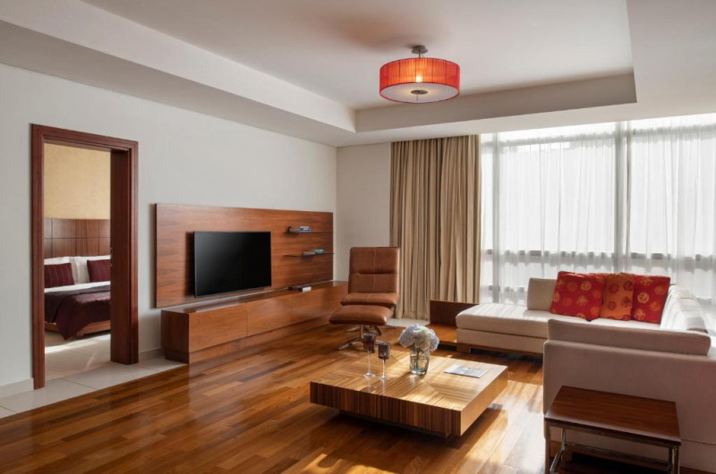 Oferind vedere la portul Doha și la Oceanul Indian, suitele de 5 stele Fraser Suites au o zonă de relaxare cu TV cu ecran plat și iPod docking station și o chicinetă cu zonă de luat masa. Băile oferă articole de toaletă de lux și uscător de păr.