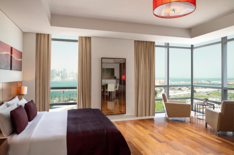 Chiar pe malul apei, de-a lungul promenadei Corniche, aceste studiouri și apartamente moderne și spațioase sunt situate in inima orașului Doha. Există o piscină in aer liber și o sală de gimnastică panoramică.