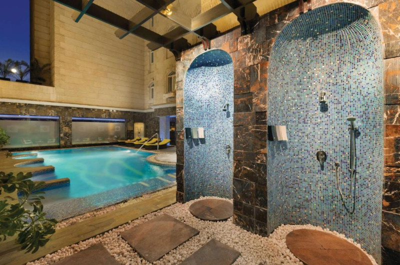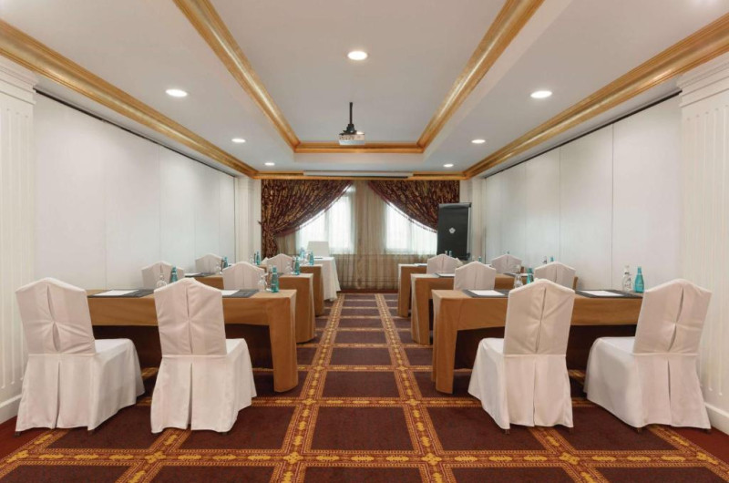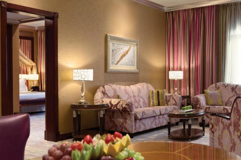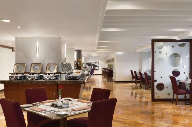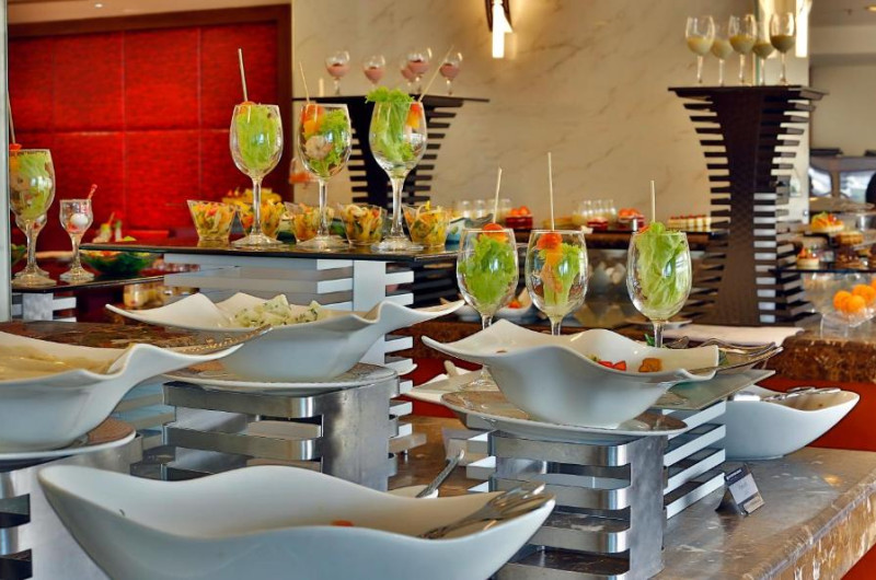 Oaspeții se pot bucura de mancăruri de talie mondială intr-una dintre unitățile hotelului, mic dejun internațional, pranz sau cină la Grand Gourmet. Al Kut Lounge din incintă servește produse de patiserie și cafea de inspirație europeană. Nu sunt disponibile băuturi alcoolice.