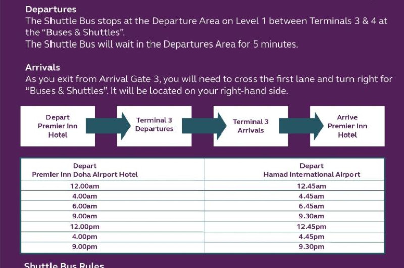 Premier Inn Doha Airport oferă de asemenea un serviciu de inchirieri auto și un centru de afaceri. Personalul de la recepție vorbește limbile arabă, engleză britanică, franceză și hindi.