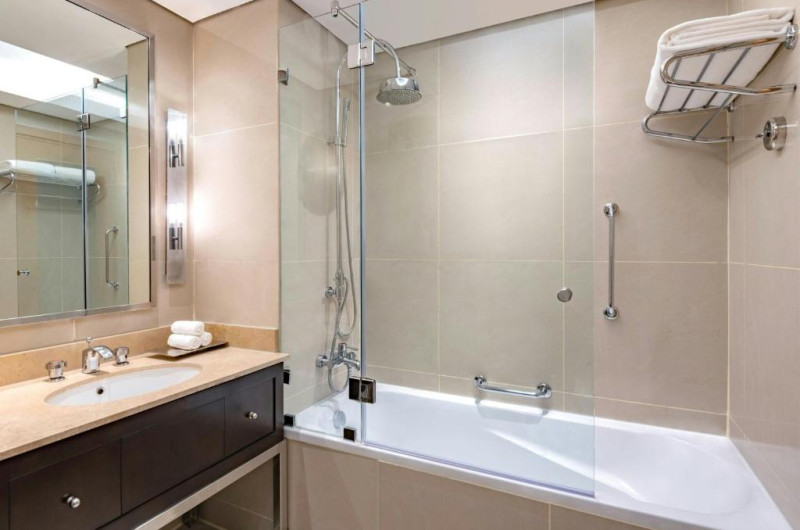 Centrul de wellness ultramodern oferă vedere la oraș și la Golful Persic. In plus, oaspeții se pot relaxa la piscina interioară.