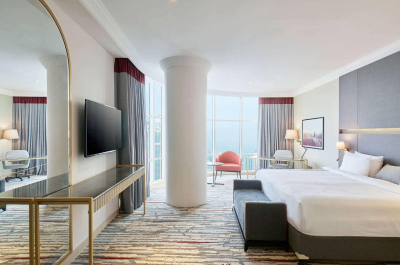 La acest hotel, camerele sunt dotate cu dulap pentru haine. Baia proprie oferă un bideu, articole de toaletă gratuite și un uscător de păr. Camerele de la Ramada by Wyndham Doha Old Town au climatizare și un birou.