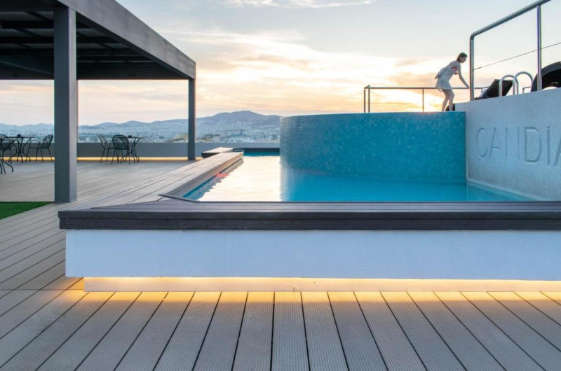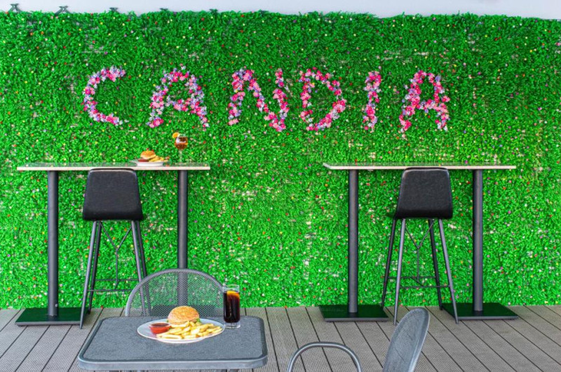 Hotelul Candia oferă un restaurant și un bar, cantină, sală de mic dejun și o sală de ședințe. Hotelul are o piscină mică și adancă pe acoperiș.