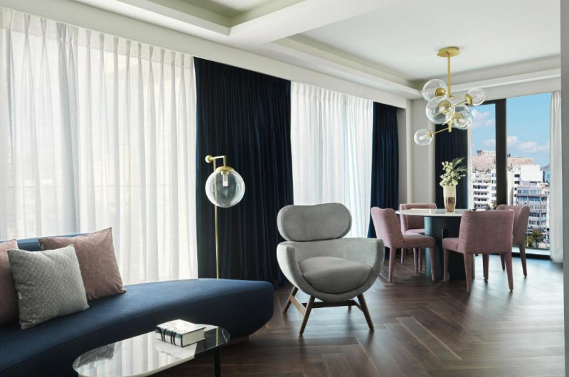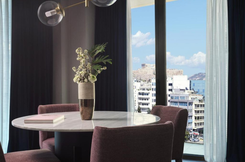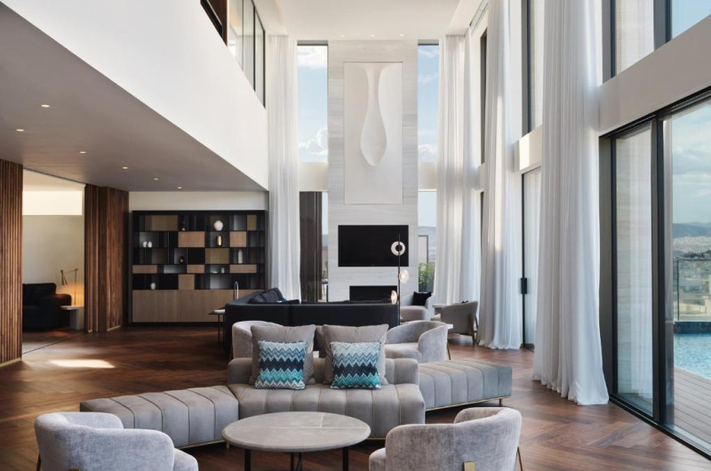 Grand Hyatt Athens, deschis in august 2018, are un centru spa nou, un bar și piscină in atrium, precum și acoperiș cu vedere uimitoare la Acropole. Hotelul oferă unități de cazare mobilate elegant, cu aer condiționat și dotări moderne. Facilitățile includ un centru de fitness și spa, precum și un restaurant.