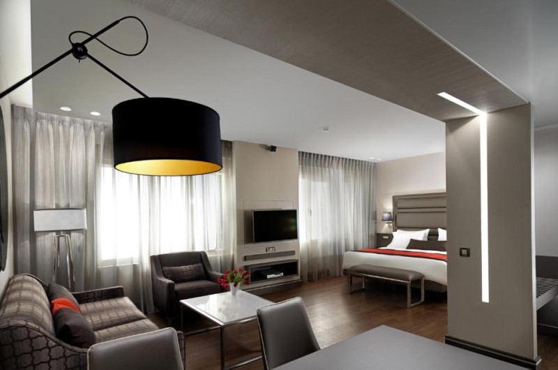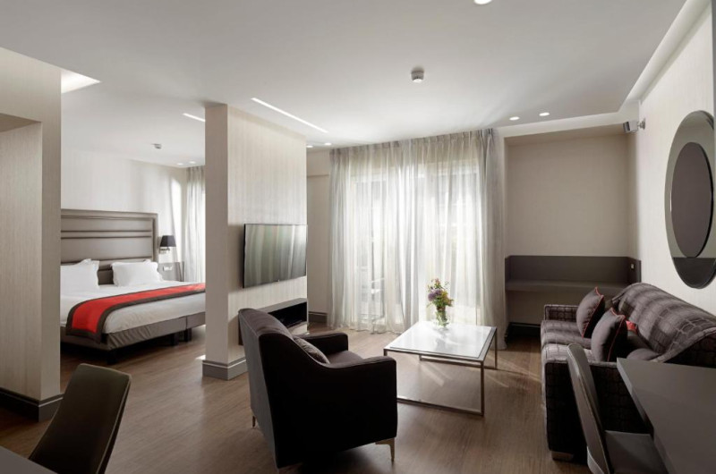 Acest hotel se află aproape de 2 artere principale din centrul Atenei, langă statii de transport in comun, facilitand clientilor călătoriile lor către situri antice, centre comerciale si plaje. De asemenea, este convenabil situat fată de aeroportul international Atena si de portul Pireu. Toate suitele au aer conditionat si includ o cameră de zi spatioasă si un dormitor confortabil, precum si acces la internet, geamuri duble si facilitătile enumerate.