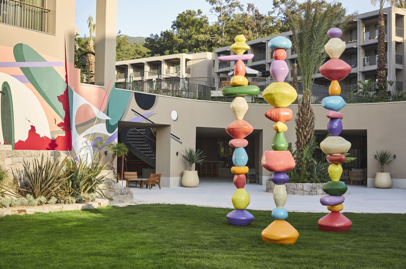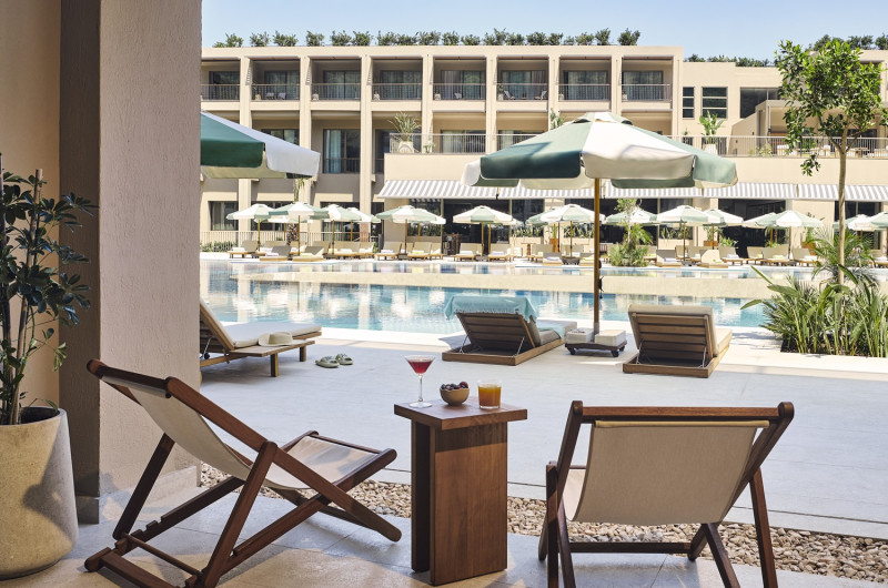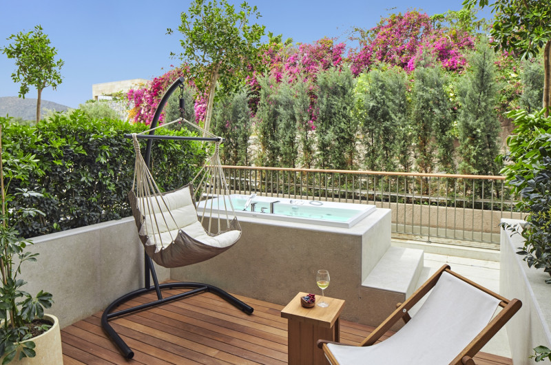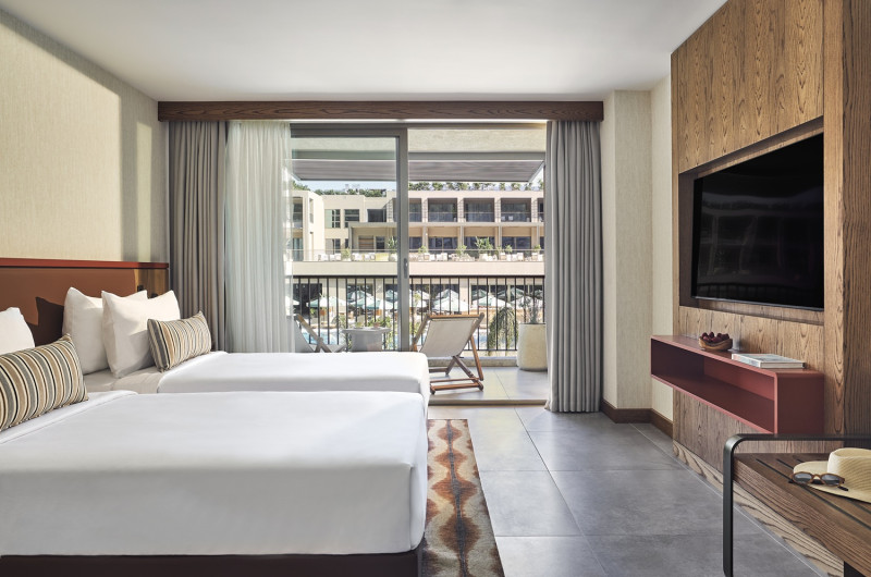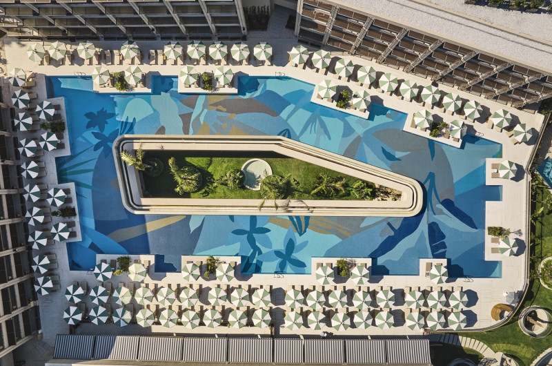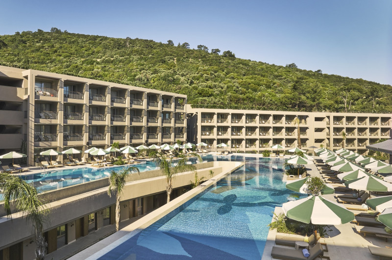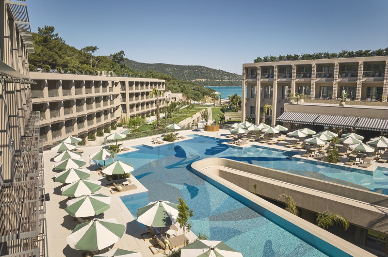 Designul contemporan al hotelului imbină elementele mediteraneene cu luxul modern, creand o atmosferă perfectă pentru relaxare. Piscinele infinity cu vedere panoramică asupra mării, plaja privată și pontoanele exclusive oferă multiple opțiuni de răcorire și relaxare.
