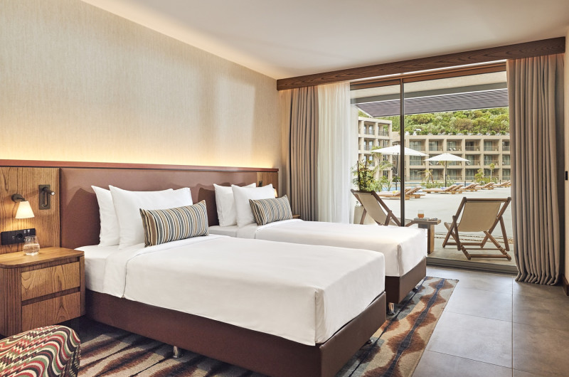 Camerele și suitele spațioase sunt decorate in nuanțe naturale și dispun de balcoane sau terase private, multe dintre ele cu vedere la mare. Hyde Bodrum este alegerea ideală pentru cupluri și adulți care caută o vacanță exclusivistă intr-un cadru elegant.