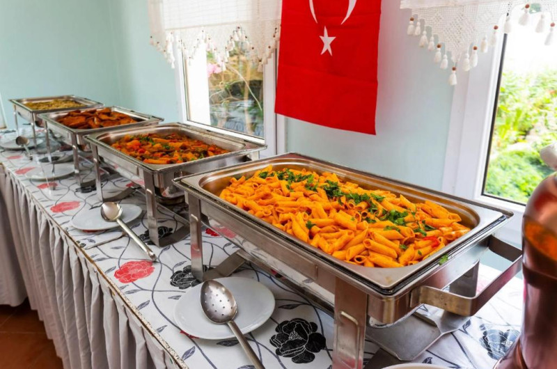 Kriss Hotel Bodrum are un restaurant care servește mancăruri din bucătăria turcească, germană și rusă. La cerere, sunt disponibile și preparate vegetariene, halal și cușer.