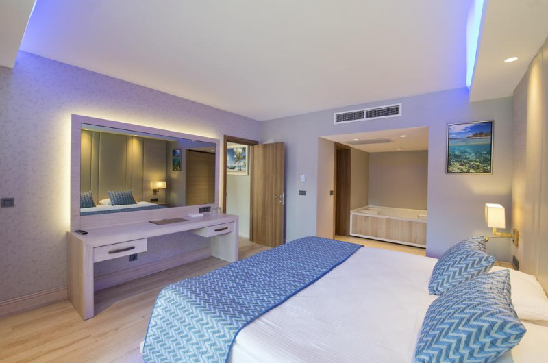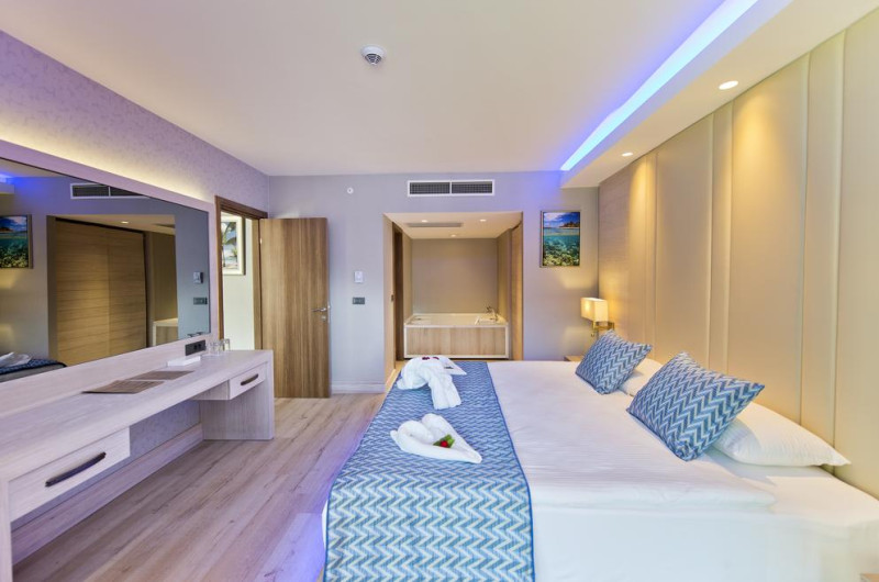 Sunt disponibile 645 camere. Oaspeții au la dispoziție serviciul de room service pentru a servi masa sau diverse băuturi. În camere există baie cu cadă sau duș, foehn, articole de toaletă gratuite, precum și halate de baie și papuci. Unele camere au balcon cu vedere la mare sau la piscină. Camerele de la Liberty Hotels Lykia sunt dotate cu aer condiționat, Tv cu canale prin satelit și seif. Oaspeții au acces gratuit la serviciul Wi-fi în camere. Curățenia in cameră se face zilnic. Proprietatea oferă camere pentru nefumători.