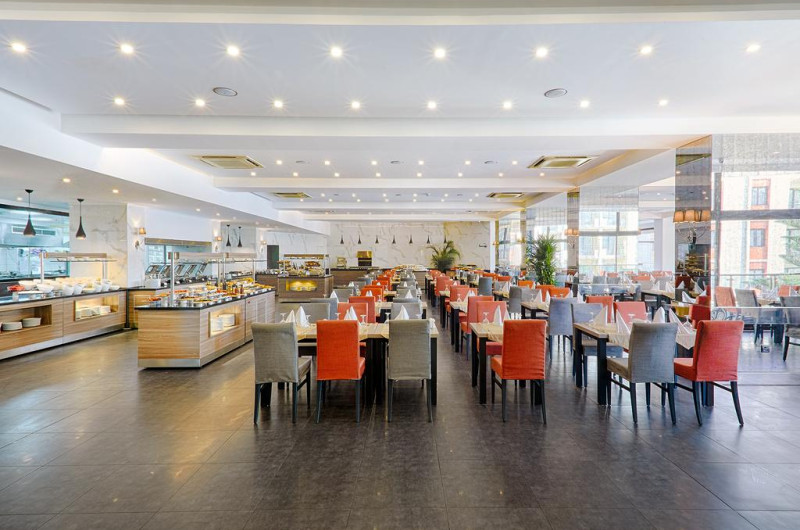 La Pırıl Hotel Thermal & Beauty Spa oaspeții au la dispoziție 2 restaurante unde pot savura mâncăruri delicioase, în stil bufet sau à la carte. Preparate din bucătăria internațională și italiană sunt oferite zilnic. Masa poate fi servită atât în interior, cît si în aer liber, pe terasă, în funcție de vreme. 4 baruri, dintre care unul la piscină, unul pe plajă și unul în lobby, sunt disponibile cu o ofertă variată de băuturi răcoritoare și alcoolice.