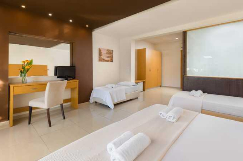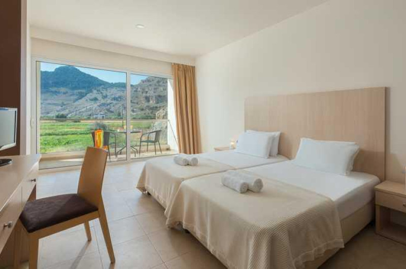 Sunt disponibile 40 camere. Unele camere au balcon, cu vedere la piscină, unde oaspeții se pot relaxa în voie. În camere există baie cu cadă sau duș prevăzută cu foehn. Camerele luminoase de la Anavadia sunt dotate cu aer condiționat, Tv și seif. Oaspeții au la dispoziție serviciul de room service pentru a servi masa sau diverse băuturi. Curățenia in cameră se face zilnic. Fiecare unitate de cazare are frigider. Proprietatea oferă camere pentru familie cu o suprafață mai mare și un număr mai mare de paturi față de cele standard. Se pot rezerva de asemenea camere pentru nefumători.