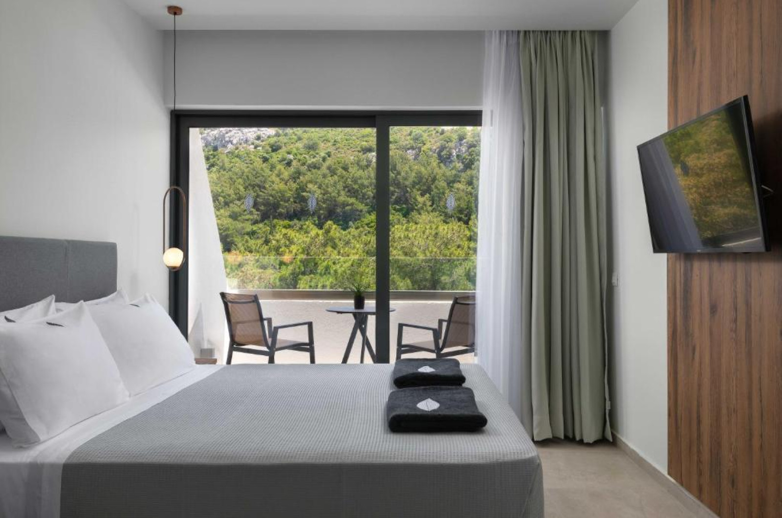 Sunt disponibile 58 camere. Camerele de la Atalanti Boutique au în dotare aer condiționat și Tv. Fiecare cameră dispune de mașină pentru preparare cafea sau ceai. În camere există baie cu cadă sau duș prevăzută cu foehn. Camerele au balcon cu masă și scaune unde pot fi petrecute momente de relaxare. Oaspeții au acces gratuit la serviciul Wi-fi în camere. Curățenia in cameră se face zilnic. Proprietatea oferă camere pentru nefumători.