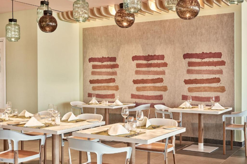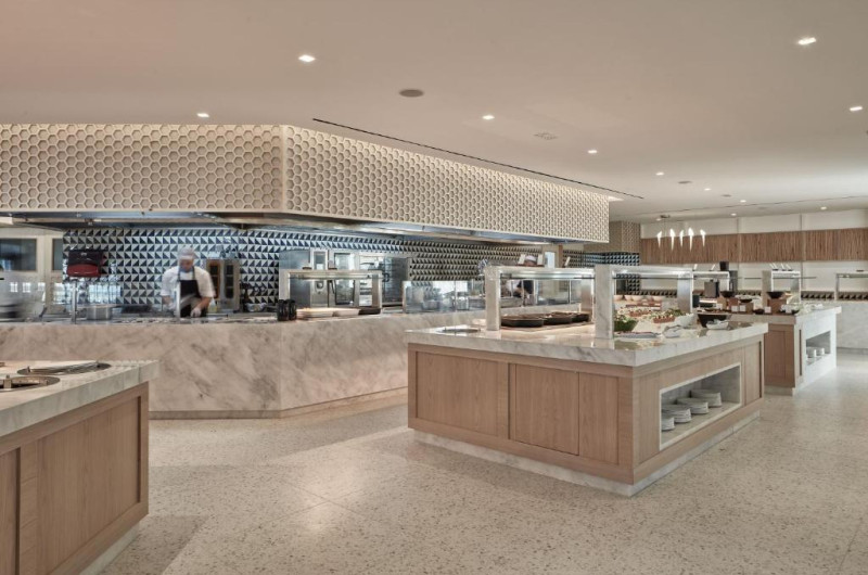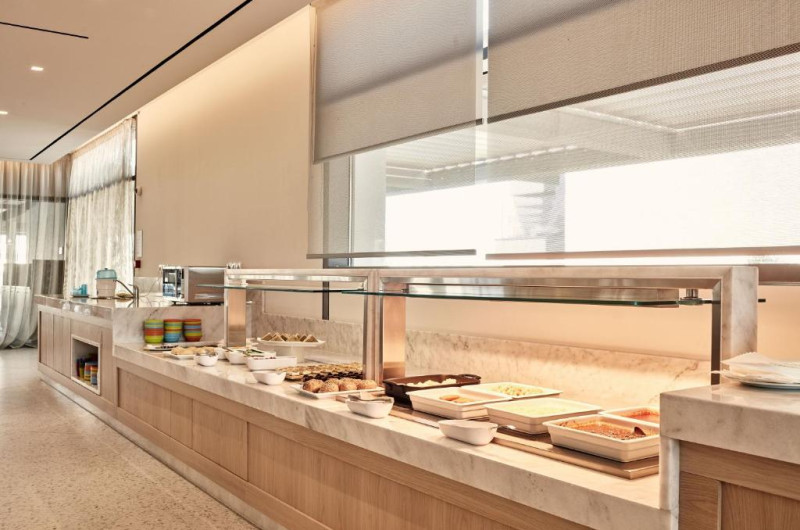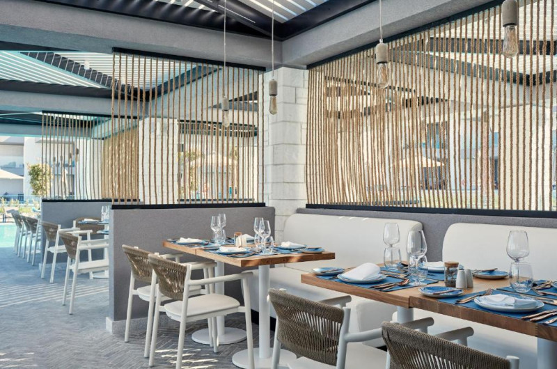 Oaspeții cazați la Atlantica Dreams Resort au la dispoziție un mic dejun tip bufet. Acest hotel are un restaurant care servește mancăruri din bucătăria americană, grecească și italiană. La cerere, sunt disponibile și preparate vegetariene, fără lactate și vegane.