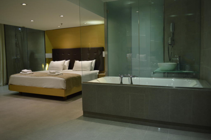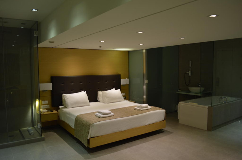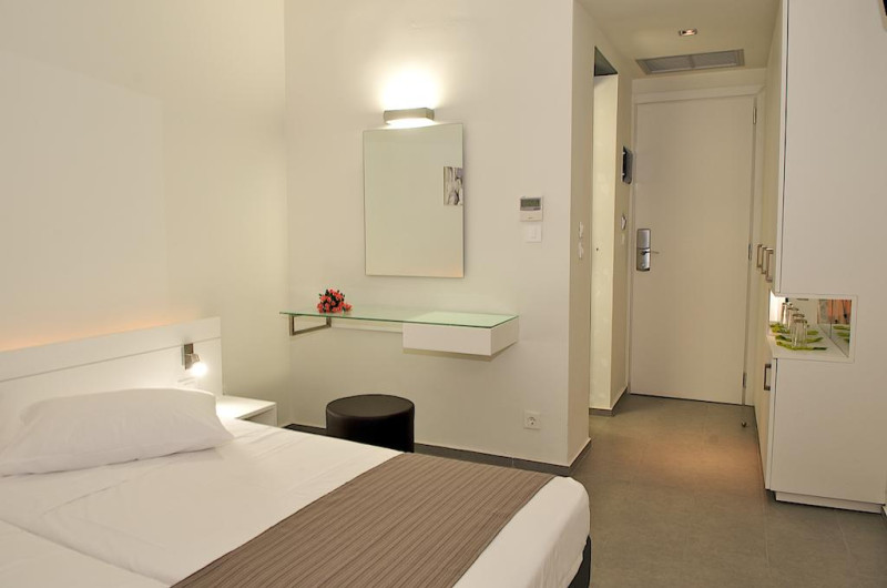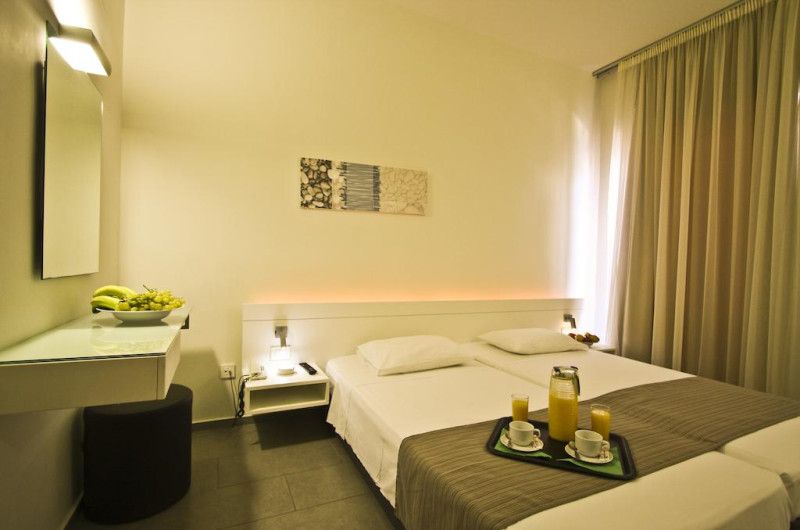 Sunt disponibile 47 camere. În camere există baie cu cadă sau duș ce are în dotare foehn și articole de toaletă gratuite. Camerele de la Atlantis City Hotel sunt dotate cu aer condiționat, Tv cu canale prin satelit și seif. Unele camere au balcon cu vedere la mare, unde oaspeții pot admira apusul sau răsăritul soarelui. Oaspeții au la dispoziție serviciul de room service pentru a servi masa sau diverse băuturi. Oaspeții au acces gratuit la serviciul Wi-fi în camere. Anumite camere au cadă cu hidromasaj care asigură un plus de confort și răsfăț. Fiecare unitate de cazare are frigider. Proprietatea oferă camere pentru nefumători.