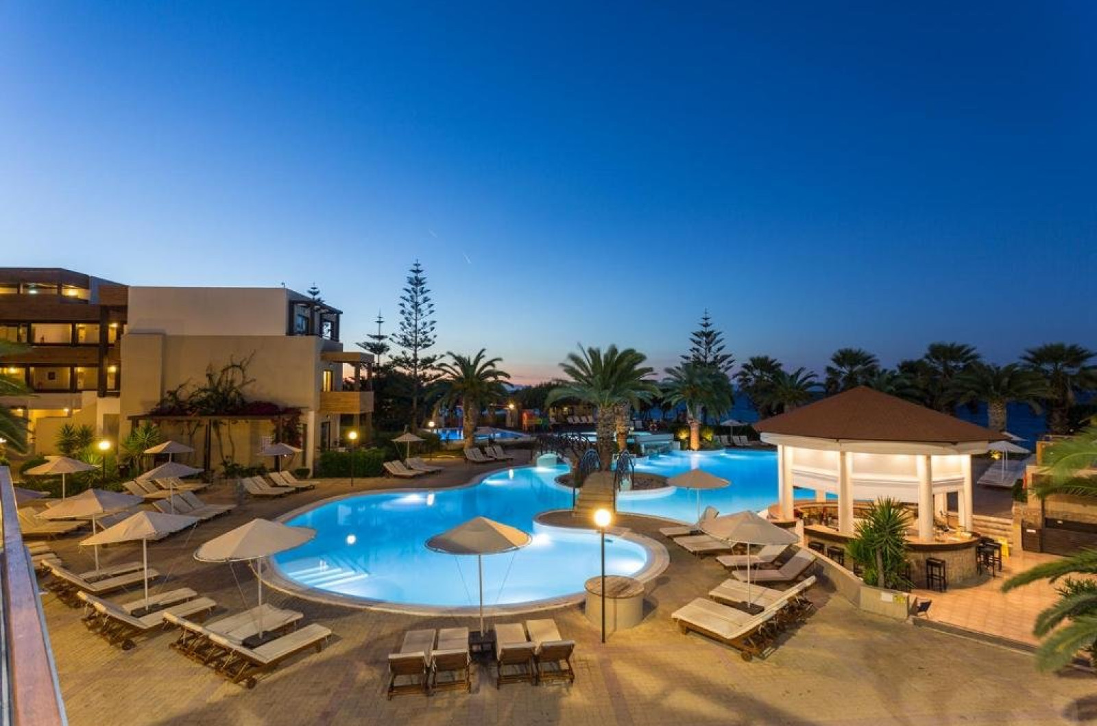 Facilitati hotel: restaurant, bar, bar la piscina, 2 piscine in aer liber, tobogane acvatice, sezlonguri si umbrele (gratuite atat la piscina cat si la plaja), prosoape de plaja (cu depozit), gradina, acces internet WiFi.
