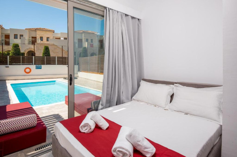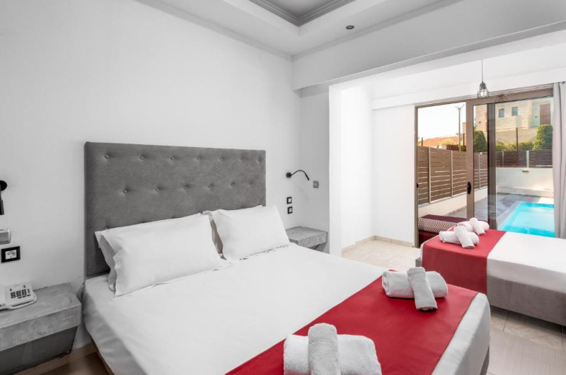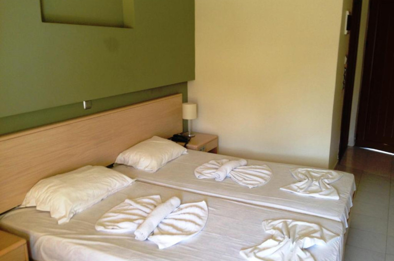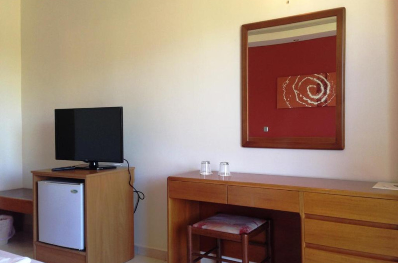 Unele camere au balcon cu vedere la grădină sau la piscină. În camere există baie cu cadă sau duș ce are în dotare foehn și articole de toaletă gratuite. Camerele confortabile de la Delfinia Resort au pardoseală de gresie/ marmură, aer condiționat, Tv cu canale prin satelit și seif. Fiecare cameră dispune de cană-fierbător. Oaspeții au acces gratuit la serviciul Wi-fi în camere. Curățenia in cameră se face zilnic. Fiecare unitate de cazare are frigider. Proprietatea oferă camere pentru familie cu o suprafață mai mare și un număr mai mare de paturi față de cele standard. Se pot rezerva de asemenea camere pentru nefumători.