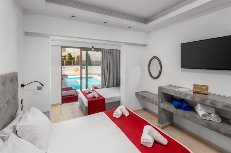 Cel mai apropiat aeroport este Aeroportul Internaţional Rodos, situat la o distanță de 18 km. La cerere proprietatea organizează transfer la/de la aeroport contra cost.