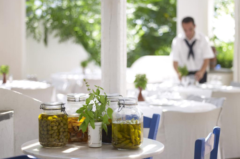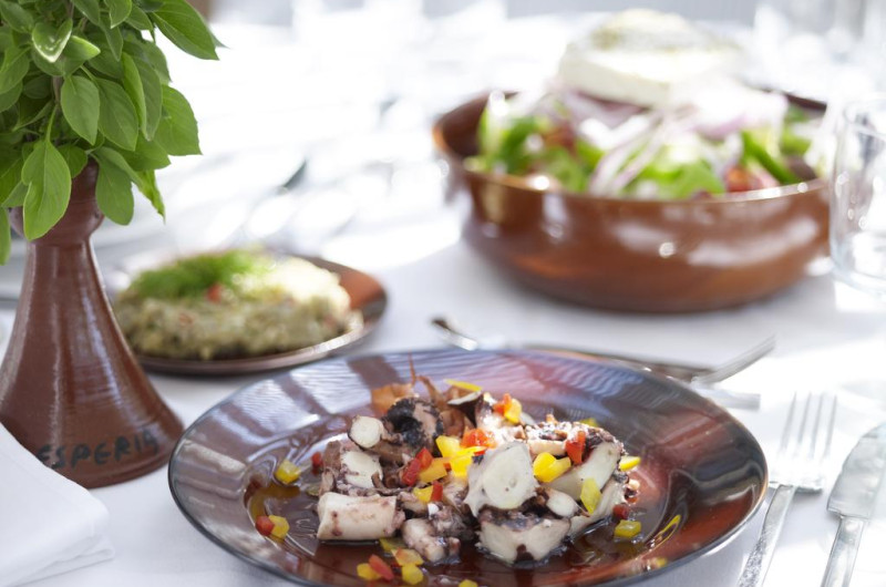 La Esperos Palace Resort oaspeții au la dispoziție 2 restaurante unde pot savura mâncăruri delicioase, în stil bufet sau à la carte. Preparate din bucătăria internațională, italiană, precum și preparate pescărești așteaptă să fie degustate în fiecare zi la micul dejun, prânz și cină. Pizza este de asemenea o opțiune culinară pentru cei gurmanzi. Masa poate fi servită atât în interior, cît si în aer liber, pe terasă, în funcție de vreme. 2 baruri, dintre care unul la piscină, sunt disponibile cu o ofertă variată de băuturi răcoritoare și alcoolice. Pentru cei cu anumite nevoi de nutriție, Esperos Palace Resort oferă meniuri pentru diete speciale.