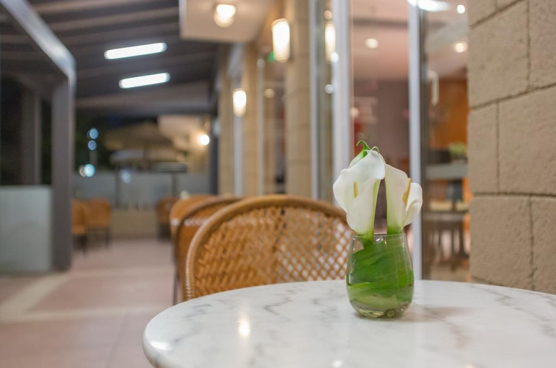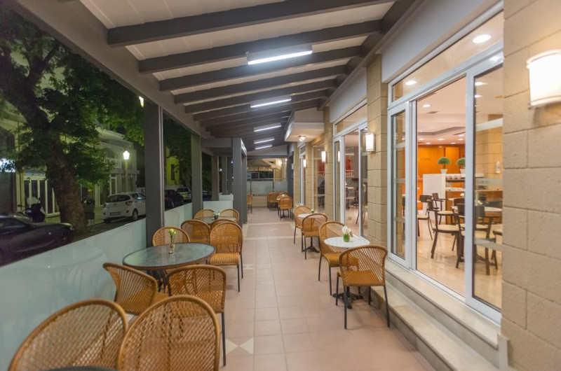 Astron Hotel servește zilnic un mic dejun tip bufet în zona de luat masa. La proprietate există un bar care oferă cafea și diverse băuturi. Acestea pot fi servite atât în interior, cît si în aer liber, pe terasă, în funcție de vreme.