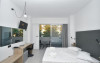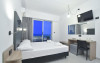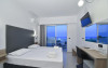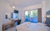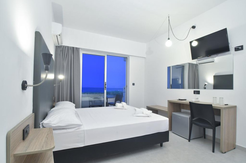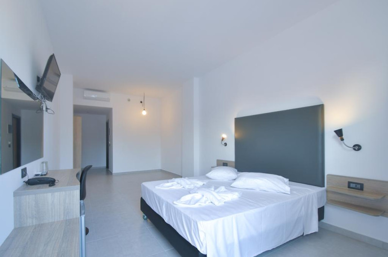 Camerele confortabile de la Evita Bay au pardoseală de gresie/ marmură, aer condiționat, Tv cu canale prin satelit și seif. În camere există baie cu cadă sau duș ce are în dotare foehn și articole de toaletă gratuite. Unele camere au balcon cu vedere la mare, unde oaspeții pot admira apusul sau răsăritul soarelui. Oaspeții au acces gratuit la serviciul Wi-fi în camere. Curățenia in cameră se face zilnic. Fiecare unitate de cazare are frigider. Proprietatea oferă camere pentru familie cu o suprafață mai mare și un număr mai mare de paturi față de cele standard.