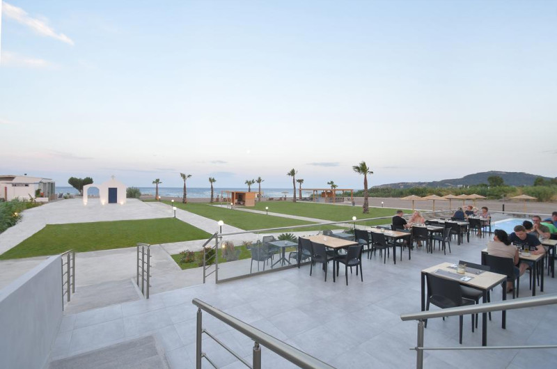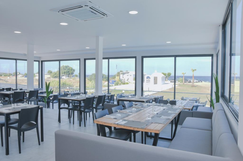 La Evita Bay oaspeții au la dispoziție un restaurant care servește mâncare în stil bufet. Preparate din bucătăria grecească așteaptă să fie degustate în fiecare zi. Masa poate fi servită atât în interior, cît si în aer liber, pe terasă, în funcție de vreme. Oaspeţii pot avea diverse băuturi răcoritoare sau alcoolice la bar.