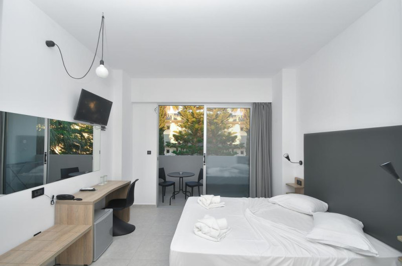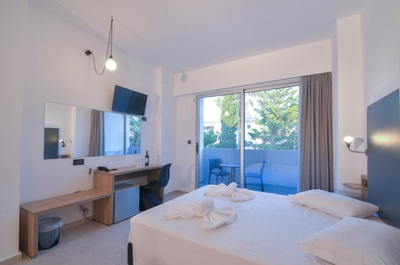 Evita Bay este o proprietate de 4 stele situată în Faliraki (Rhodos) care oferă camere cu vedere la mare, un restaurant, o piscină în aer liber și o terasă cu șezlonguri și umbrele de soare. Proprietatea are servicii de recepție cu program non - stop, concierge și închirieri auto. Se oferă acces gratuit la internet Wi-fi în spațiile publice. Parcarea este disponibilă la proprietate gratuit.
