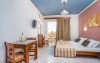 Studiourile luminoase sunt mobilate simplu si au pardoseală din gresie. Toate au chicinetă cu frigider, plite de gătit și masă. Baia privată are o cadă mică. Unitătile sunt dotate cu TV cu canale prin satelit si cutie de valori.