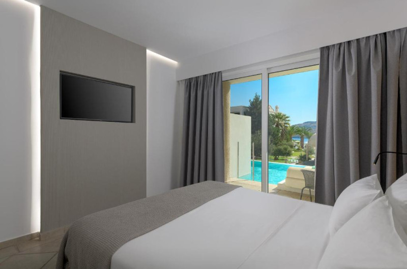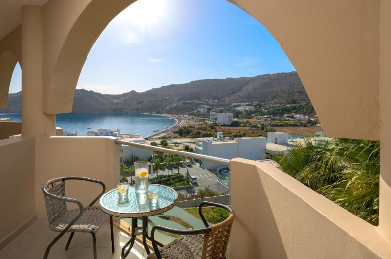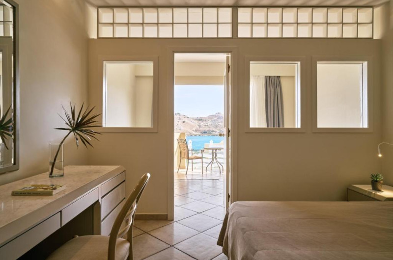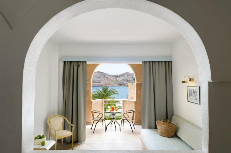Camerele mari si luminoase ale complexului Lindos Royal sunt amenajate cu gust si au vedere uimitoare la Marea Egee albastră, la golfurile din jur si la grădini si piscine.