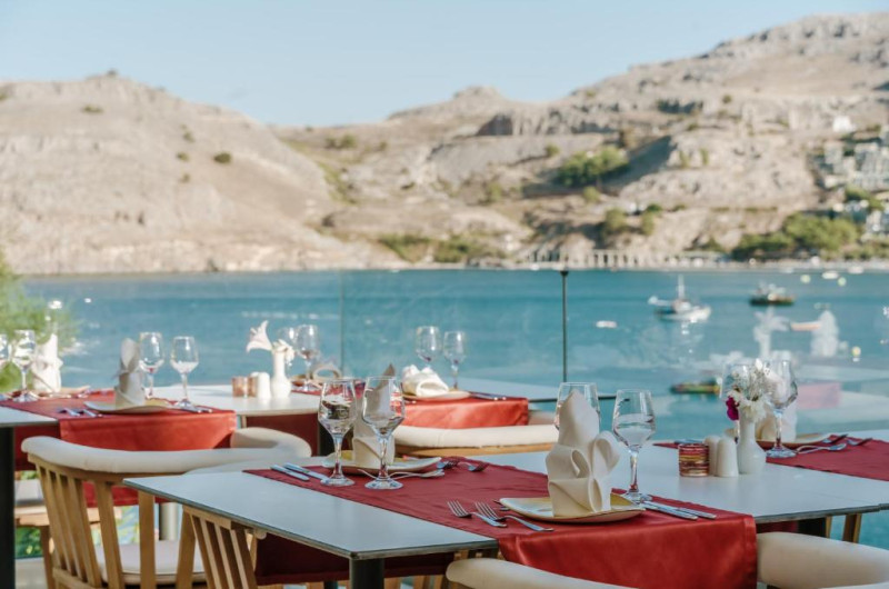 Restaurantele tip bufet ale complexului Lindos servesc preparate din bucătăria mediteraneană, asiatică si internatională. Oaspetii pot savura o băutură in barul elegant din hol sau in timp ce se relaxează pe sezlongurile de langă piscină.