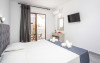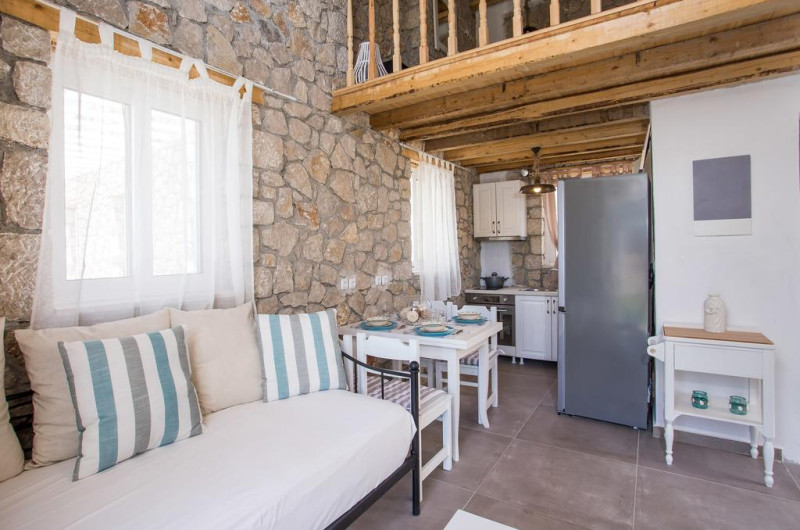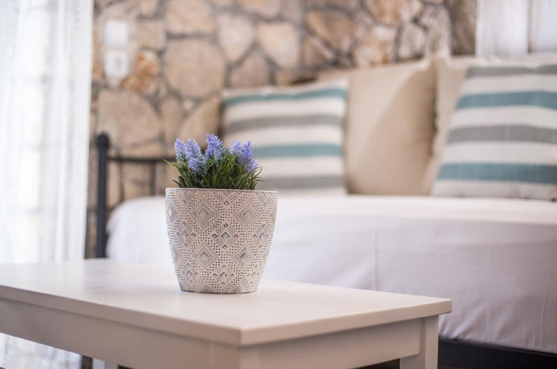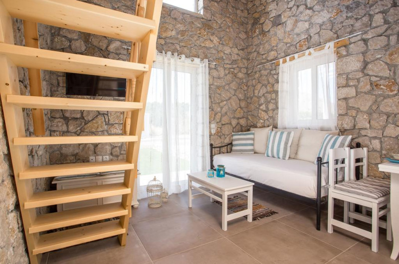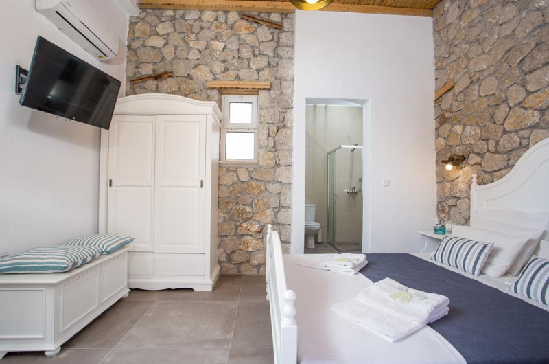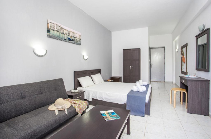 Fiecare cameră dispune de cană-fierbător. Unele camere au balcon cu vedere la mare sau la piscină. Camerele confortabile de la Loutanis Hotel sunt dotate cu pardoseală de gresie/ marmură, aer condiționat, Tv și seif. În camere există baie cu cadă sau duș ce are în dotare foehn și articole de toaletă gratuite. Oaspeții au acces gratuit la serviciul Wi-fi în camere. Fiecare unitate de cazare are frigider. Proprietatea oferă camere pentru familie cu o suprafață mai mare și un număr mai mare de paturi față de cele standard. Se pot rezerva de asemenea camere pentru nefumători.