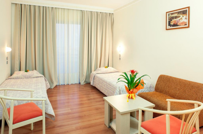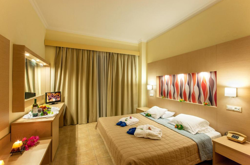 Camerele luminoase de la Marianna Palace sunt dotate cu gresie sau parchet, aer condiționat, Tv și seif. Unele camere au balcon cu vedere la mare, unde oaspeții pot admira apusul sau răsăritul soarelui. În camere există baie cu cadă sau duș ce are în dotare foehn și articole de toaletă gratuite. Oaspeții au acces gratuit la serviciul Wi-fi în camere. Curățenia in cameră se face zilnic. Anumite camere au cadă cu hidromasaj care asigură un plus de confort și răsfăț. Fiecare unitate de cazare are frigider. Proprietatea oferă camere pentru familie cu o suprafață mai mare și un număr mai mare de paturi față de cele standard.