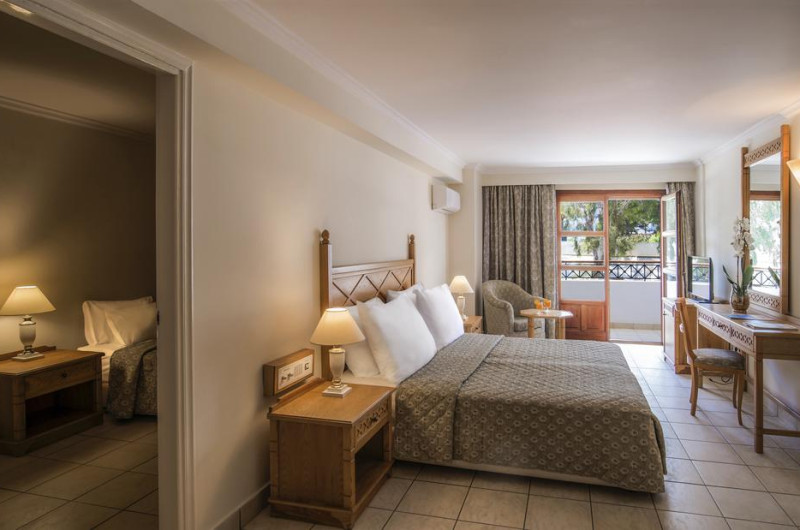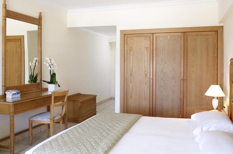Sunt disponibile 215 camere. Fiecare cameră oferă cană-fierbător și mașină pentru prepare cafea sau ceai. Oaspeții pot solicita serviciul de room service pentru a servi masa sau diverse băuturi. Camerele confortabile de la Mitsis Petit Palais au pardoseală de gresie/ marmură, aer condiționat, Tv cu canale prin satelit și seif. În camere există baie cu cadă sau duș ce are în dotare foehn și articole de toaletă gratuite. Unele camere au balcon cu vedere la mare sau la grădină. Curățenia in cameră se face zilnic. Proprietatea oferă camere pentru familie cu o suprafață mai mare și un număr mai mare de paturi față de cele standard. Se pot rezerva de asemenea camere pentru nefumători.