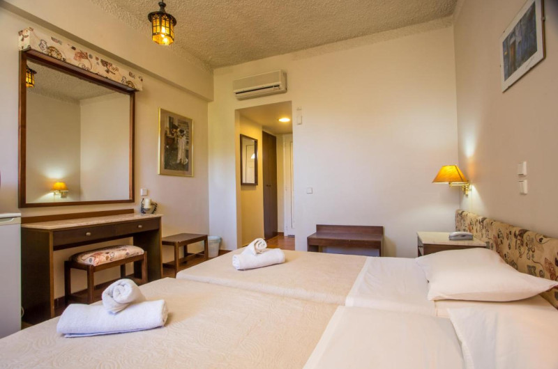 Camerele confortabile de la Muses Hotel sunt dotate cu pardoseală de gresie/ marmură, aer condiționat, Tv și seif. Oaspeții au acces gratuit la serviciul Wi-fi în camere. Camerele au balcon cu vedere la grădină. În camere există baie cu duș prevăzută cu foehn. Curățenia in cameră se face zilnic.