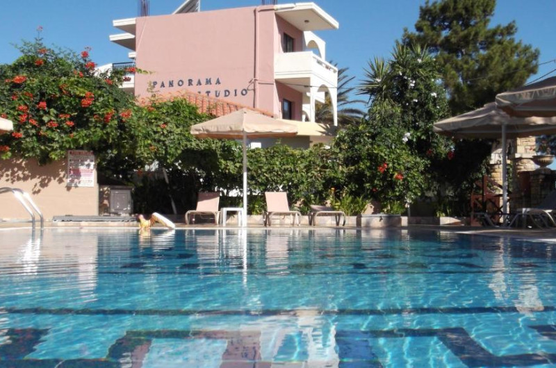 Sunt disponibile 51 camere. Camerele confortabile de la Panorama Studios au pardoseală de gresie/ marmură, aer condiționat, Tv cu canale prin satelit și seif. Fiecare cameră dispune de cană-fierbător. Camerele au balcon cu vedere la piscină sau la grădină. În camere există baie cu duș ce are în dotare foehn și articole de toaletă gratuite. Fiecare unitate de cazare include o chicinetă utilată cu frigider, plită de gătit și ustensile de bucătărie.