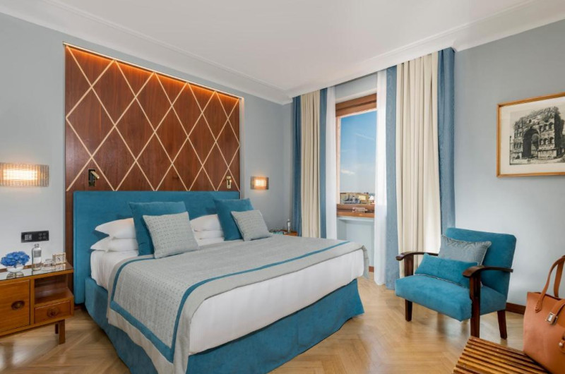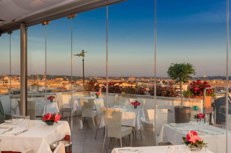 Camerele spațioase combină eleganța clasică cu facilități moderne, multe dintre ele oferind vederi panoramice asupra orașului eternal. Restaurantul de pe acoperiș incantă oaspeții cu specialități italienești autentice și priveliști spectaculoase asupra Romei.