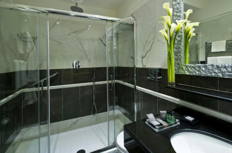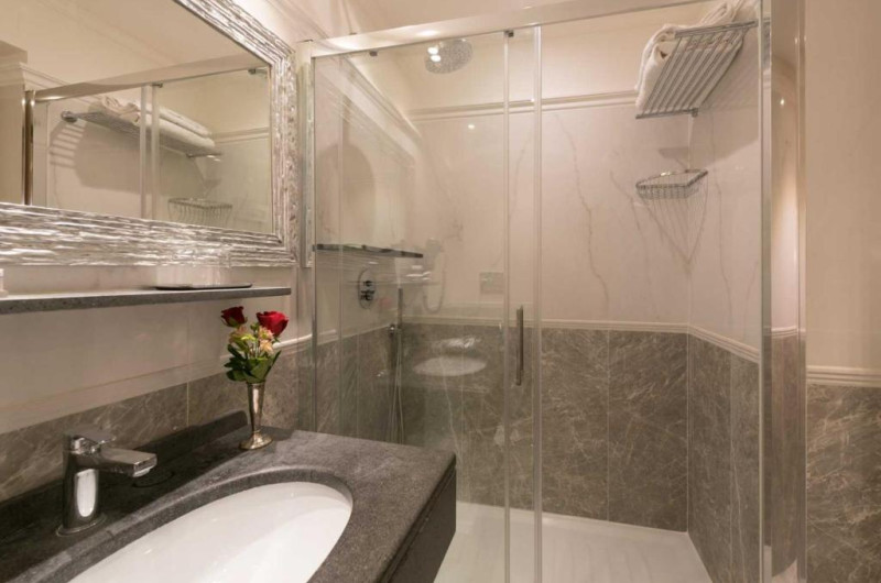 Camerele au TV cu ecran plat cu canale prin satelit si baie din marmură cu uscător de păr si articole de toaletă gratuite.