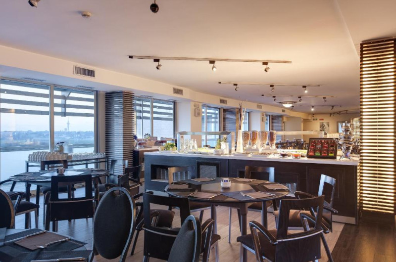 Restaurantul de la ultimul etaj are vedere panoramică la peisajul rural și servește o selecție de specialități italiene și internaționale. In timpul lunilor calde, mesele sunt servite in aer liber, pe terasă.