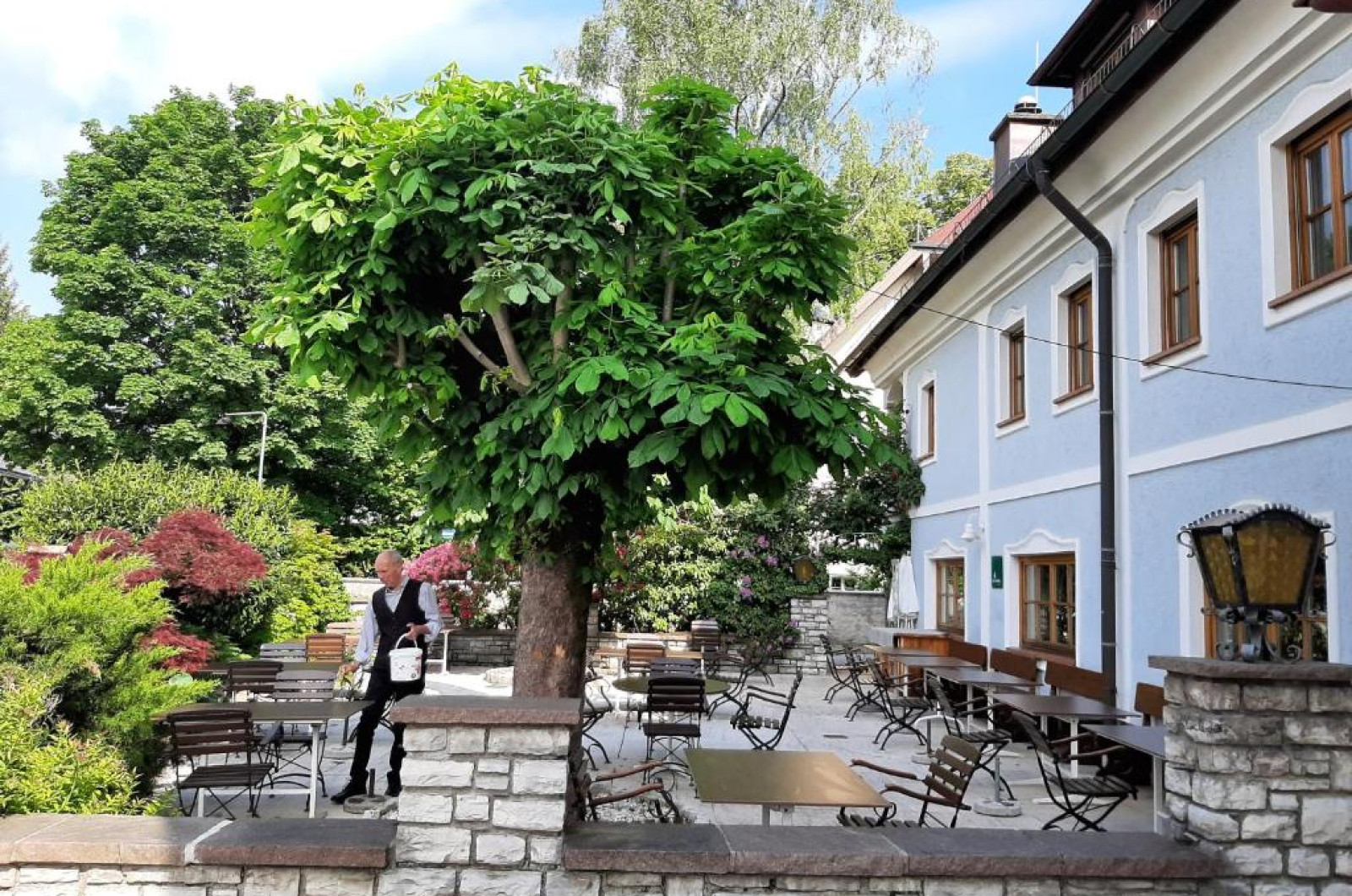 Restaurantul are o terasă si o grădină de bere. Acesta serveste preparate din bucătăria austriacă traditională.