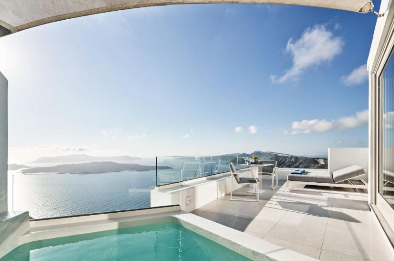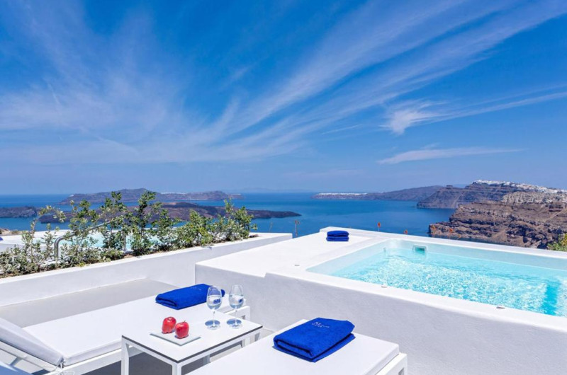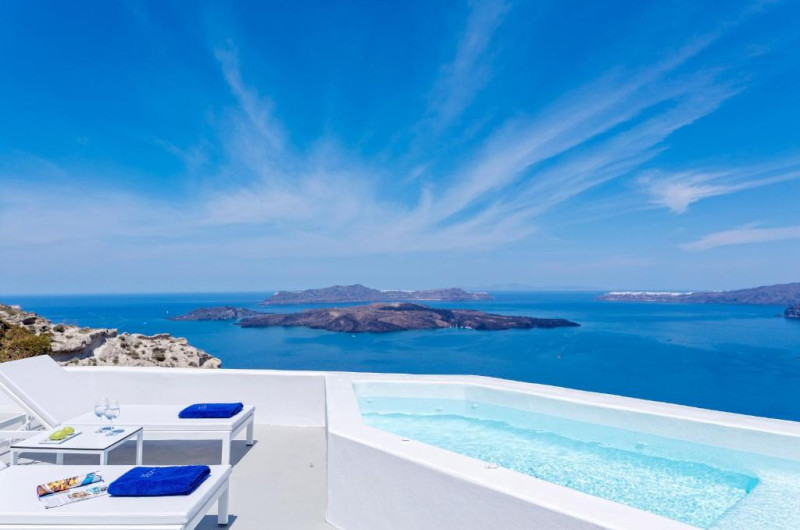 Oferind vedere panoramică la Caldera și la Marea Egee, Alti Santorini Suites - Caldera View pune la dispoziție suite decorate minimalist cu piscină mică și adancă, cu apă incălzită și facilități de hidromasaj, amplasată in aer liber. Toate unitățile au fost construite in conformitate cu arhitectura locală și au WiFi gratuit.
