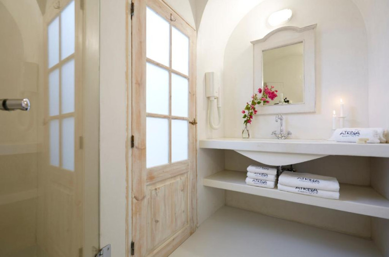 Unitățile de la Atrina sunt decorate in stilul simplu, dar elegant al insula Santorini. Toate includ o chicinetă bine utilată, cu zonă de luat masa, precum și o zonă de living cu TV LCD cu canale prin satelit. Baia privată are halate de baie, papuci și articole de toaletă.