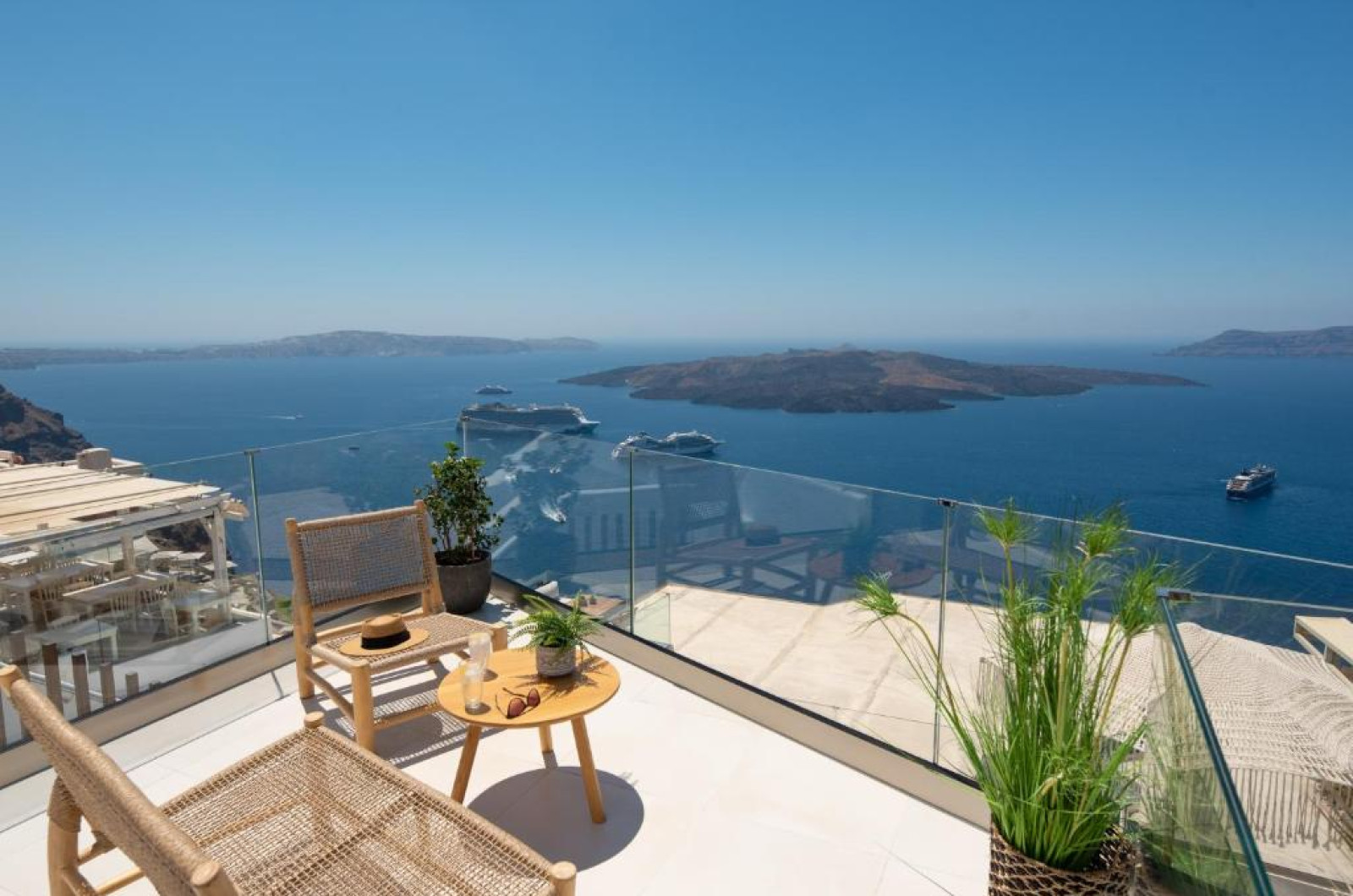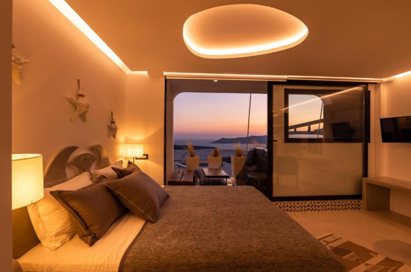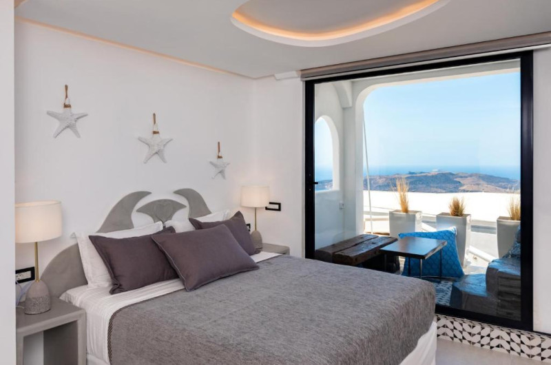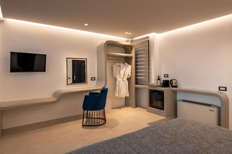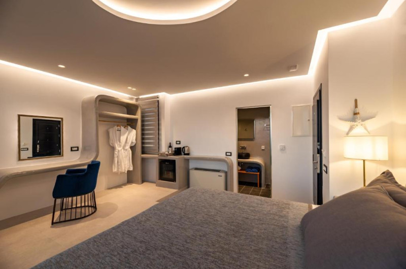 Toate camerele combină decorul modern cu accente tradiționale cicladice și au TV cu ecran plat cu canale prin satelit. Oaspeții vor găsi zone de relaxare spațioase in fiecare unitate. Toate camerele includ o baie privată cu duș de ultimă generație și oferă articole de toaletă gratuite și uscător de păr. Unele unități includ și o piscină interioară mică și adancă.