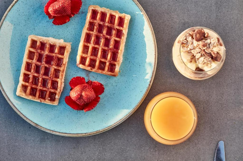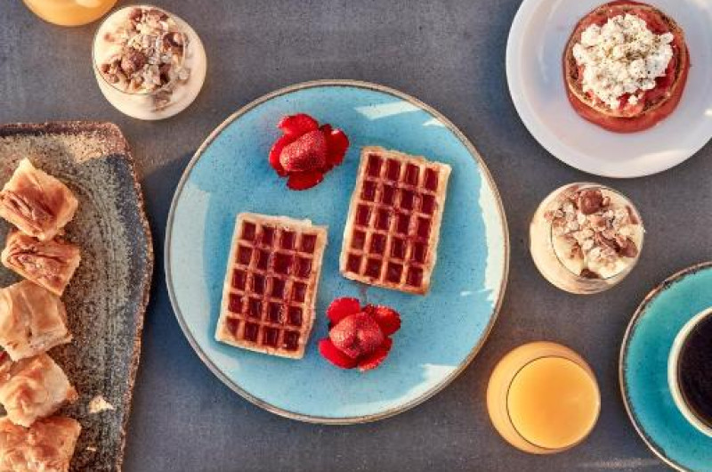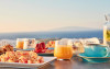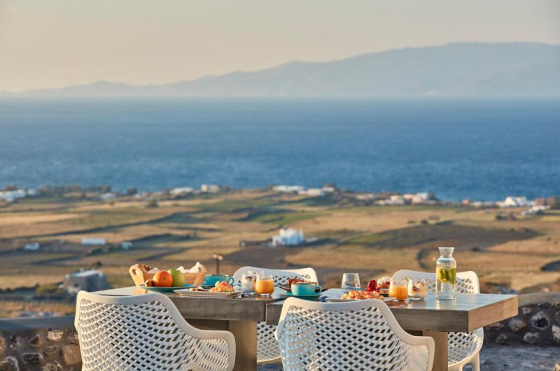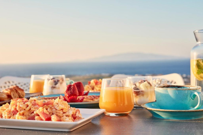 Un meniu de mic dejun alternativ, imbogățit cu arome grecești, este servit zilnic pe terasa privată a vilelor pentru rezervare, inclusiv micul dejun.