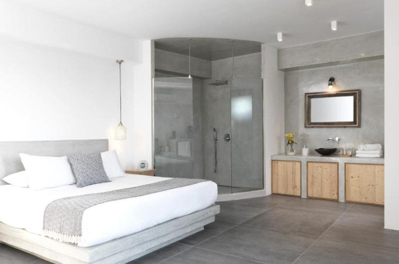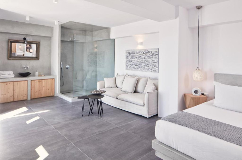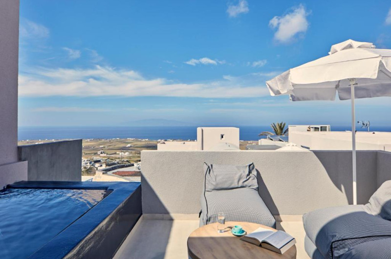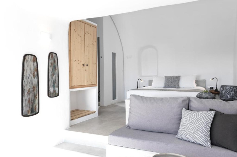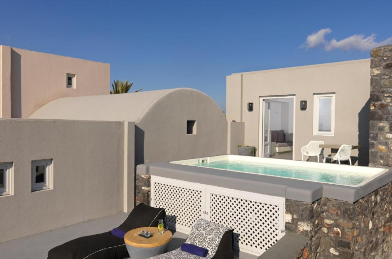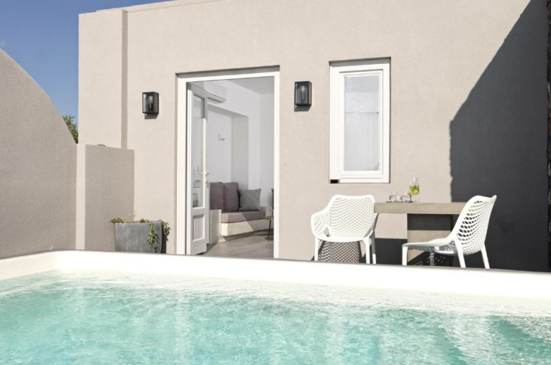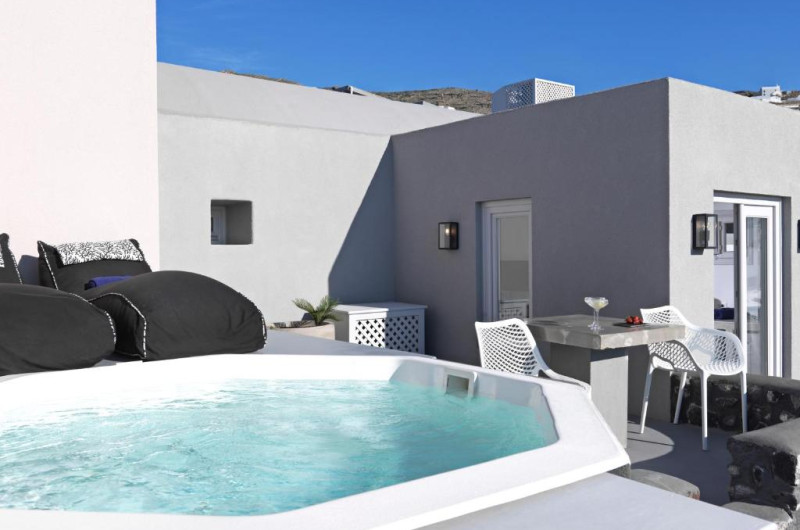 Unele dintre vilele din Elysian Santorini au piscine private interioare sau in aer liber sau piscine sau căzi cu hidromasaj cu vedere la mare, la sat și la apus, in timp ce unele vile nu oferă facilități private de apă. Unitățile sunt impărțite in trei complexe și toate au aer condiționat și includ o zonă de relaxare in aer liber cu șezlonguri și vedere la mare și la satul Finikia.