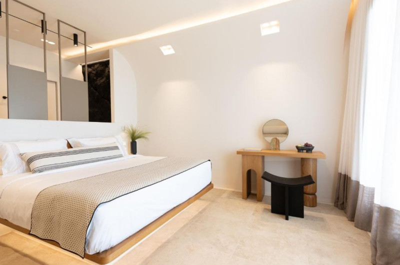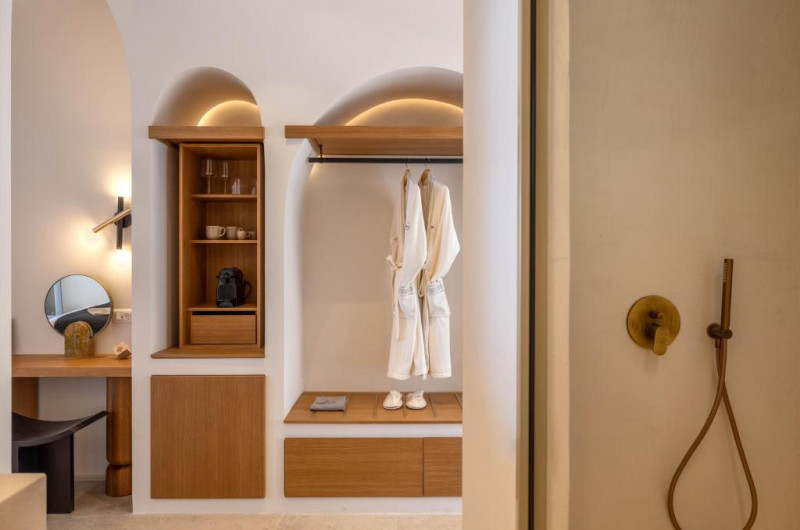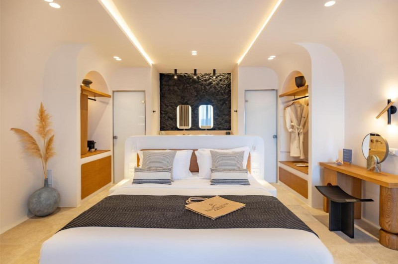 Acest hotel pune la dispoziția oaspeților camere cu aer condiționat, birou, cafetieră, un minibar, cutie de valori, televizor cu ecran plat, terasă și baie proprie cu duș. Baia proprie oferă articole de toaletă gratuite. La Santo Mine Oia Suites, fiecare cameră este dotată cu lenjerie de pat și prosoape.