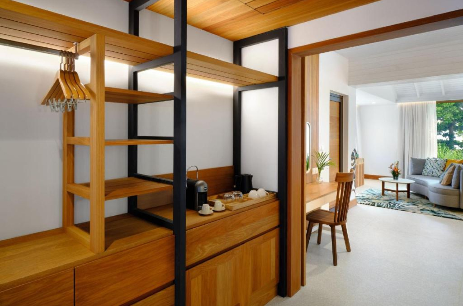 Camerele și suitele spațioase sunt decorate in nuanțe calde, inspirate din peisajul local, și sunt dotate cu balcoane private care oferă priveliști spre Oceanul Indian sau spre grădinile tropicale. Fiecare unitate de cazare dispune de aer condiționat, TV cu ecran plat și minibar.