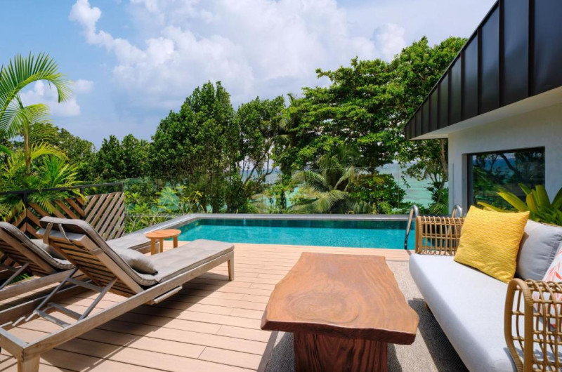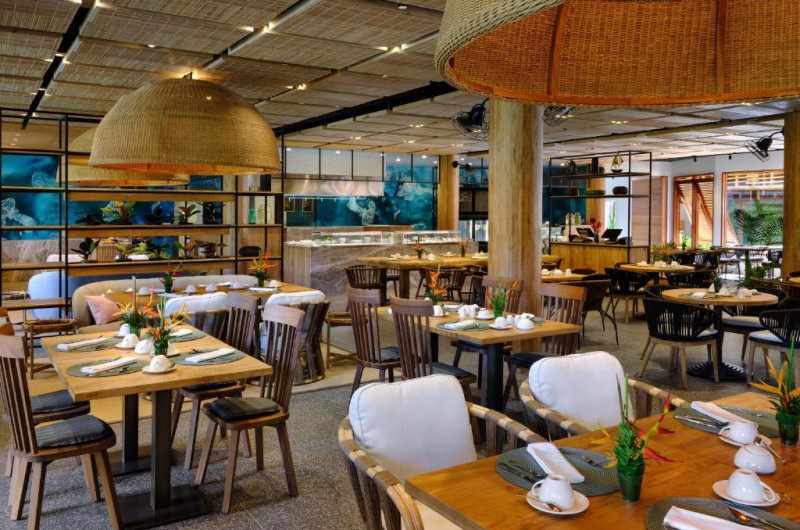 Restaurantul principal al resortului servește o combinație rafinată de preparate creole și internaționale, cu accent pe fructele de mare proaspete și ingredientele locale. Piscina infinity oferă un loc perfect pentru relaxare, cu vedere panoramică spre ocean. Pentru cei care doresc să exploreze insula, resortul pune la dispoziție servicii de inchiriere mașini și organizare de excursii.