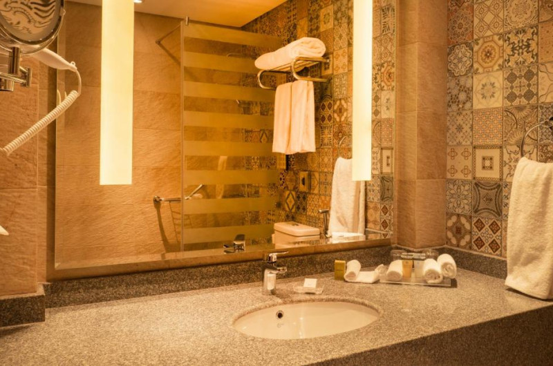 Camerele sunt spațioase și au lenjerie de pat de lux. Sunt dotate cu minibar și baie privată cu marmură. Fiecare cameră include un balcon cu vedere la grădină.
