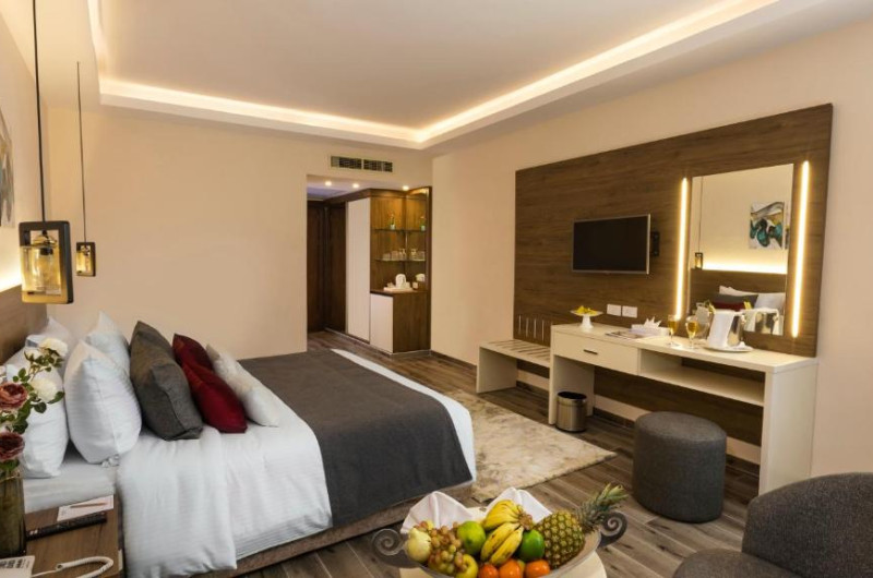 Cu deschidere spre balcoane sau terase private, camerele de la Amwaj Oyoun Resort & Casino - Sharm El Sheikh au o zonă de relaxare spațioasă, dotată cu televizoare cu ecran plat cu canale prin satelit. Băile private includ căzi și telefoane.